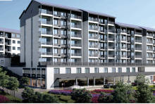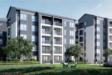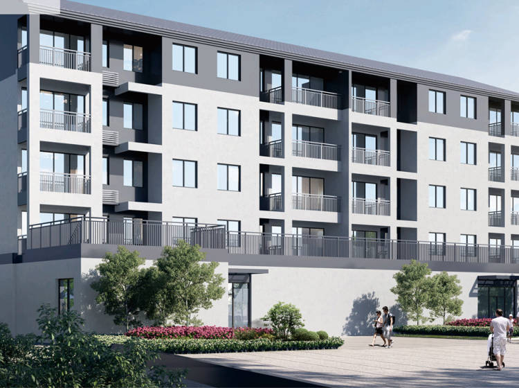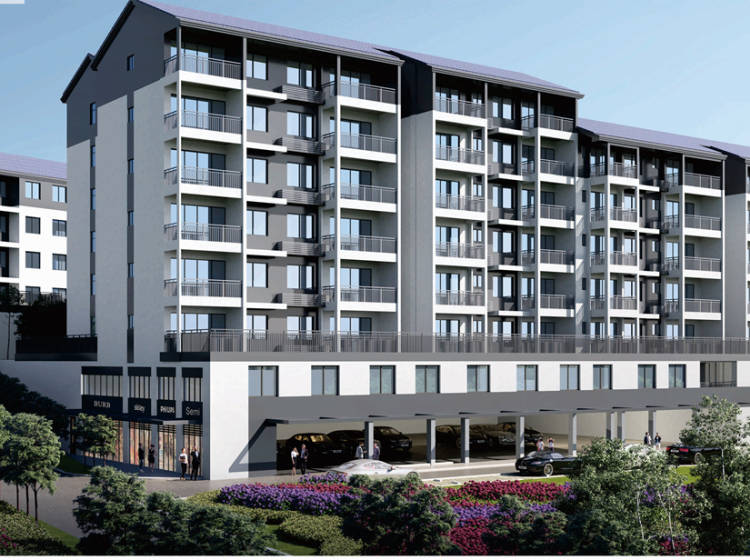 其中12套顶层住宅带阁楼,2套底层住宅带花园,项目采用人车分流的设计标准,车位配比为1:1。