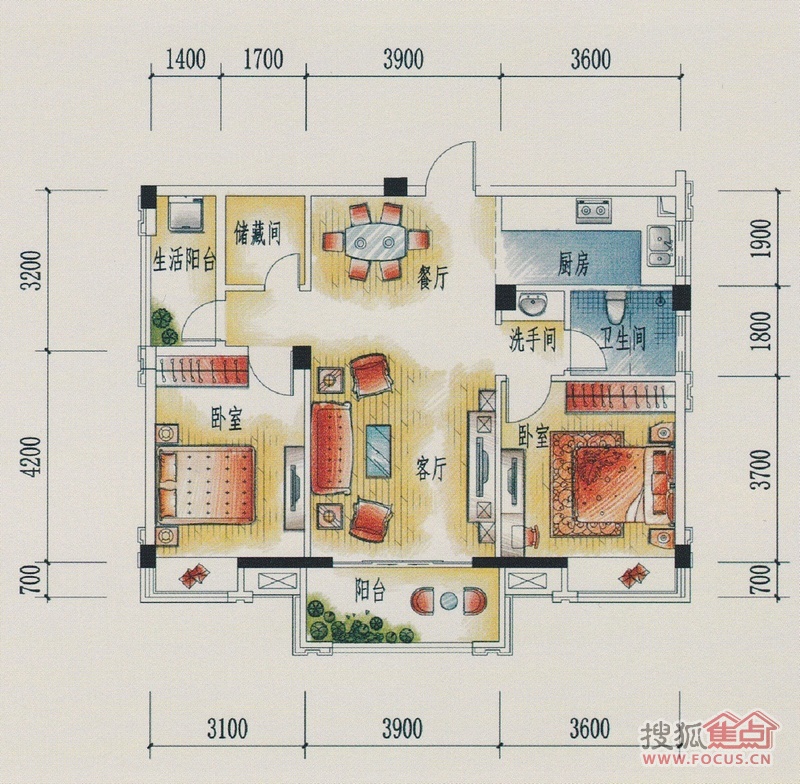 3室2厅2卫-4、5栋 1单元03 2单元01