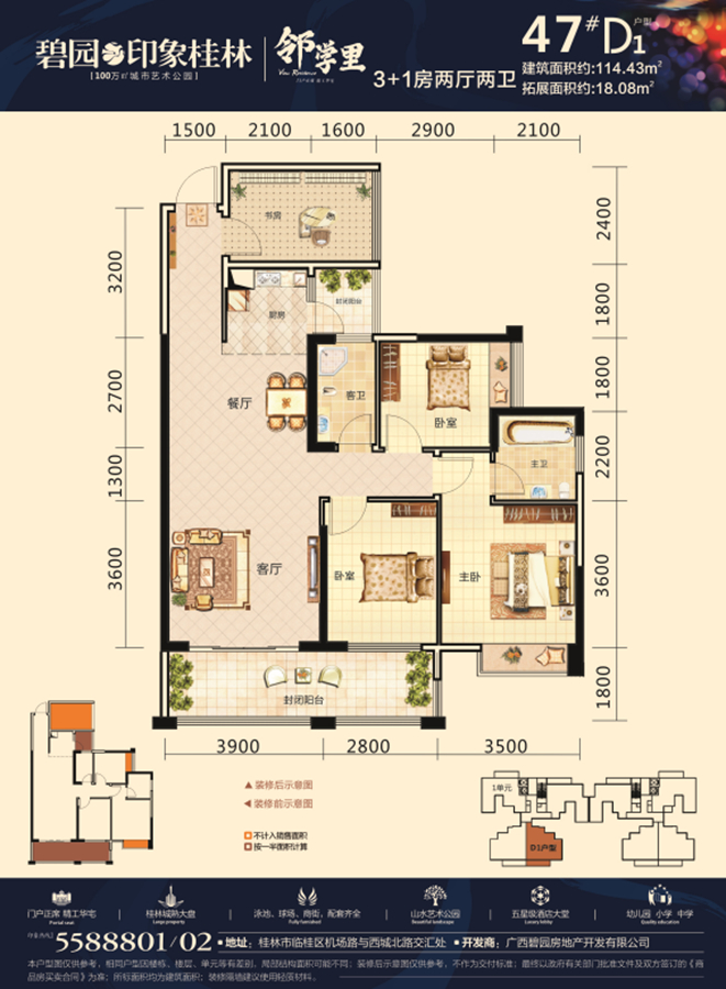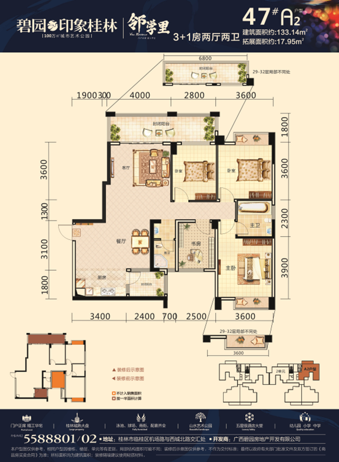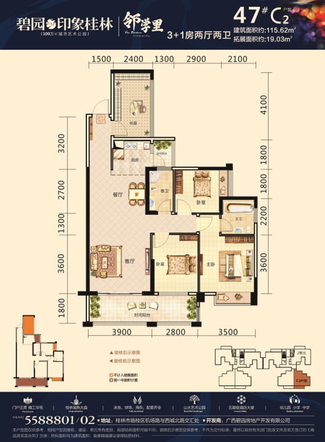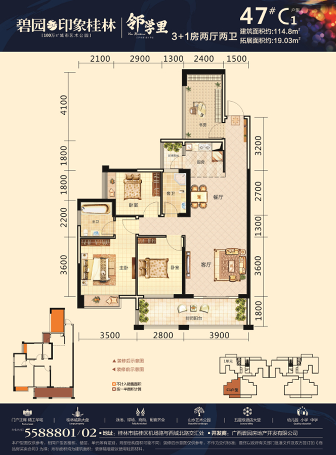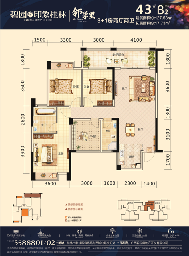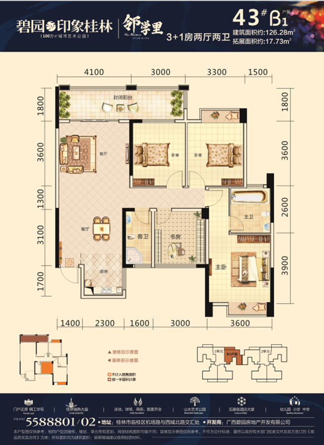一站式教育:小区自带博之特朗幼儿园!一墙之隔即是远辰实验小学!百年名校桂林中学临桂分校就在小区斜对面!还有碧园集团独资创办的首师大附中!中学学区是新龙中学!