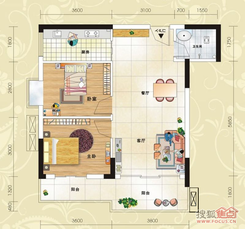 96万/套 建面105.49m²