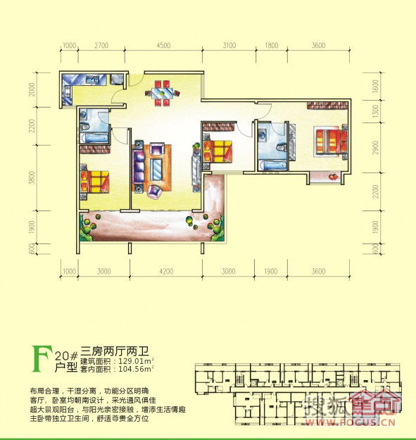 主力户型:单间配套、一房一厅一卫、两房两厅一卫、两房两厅两卫、三房两厅两卫。