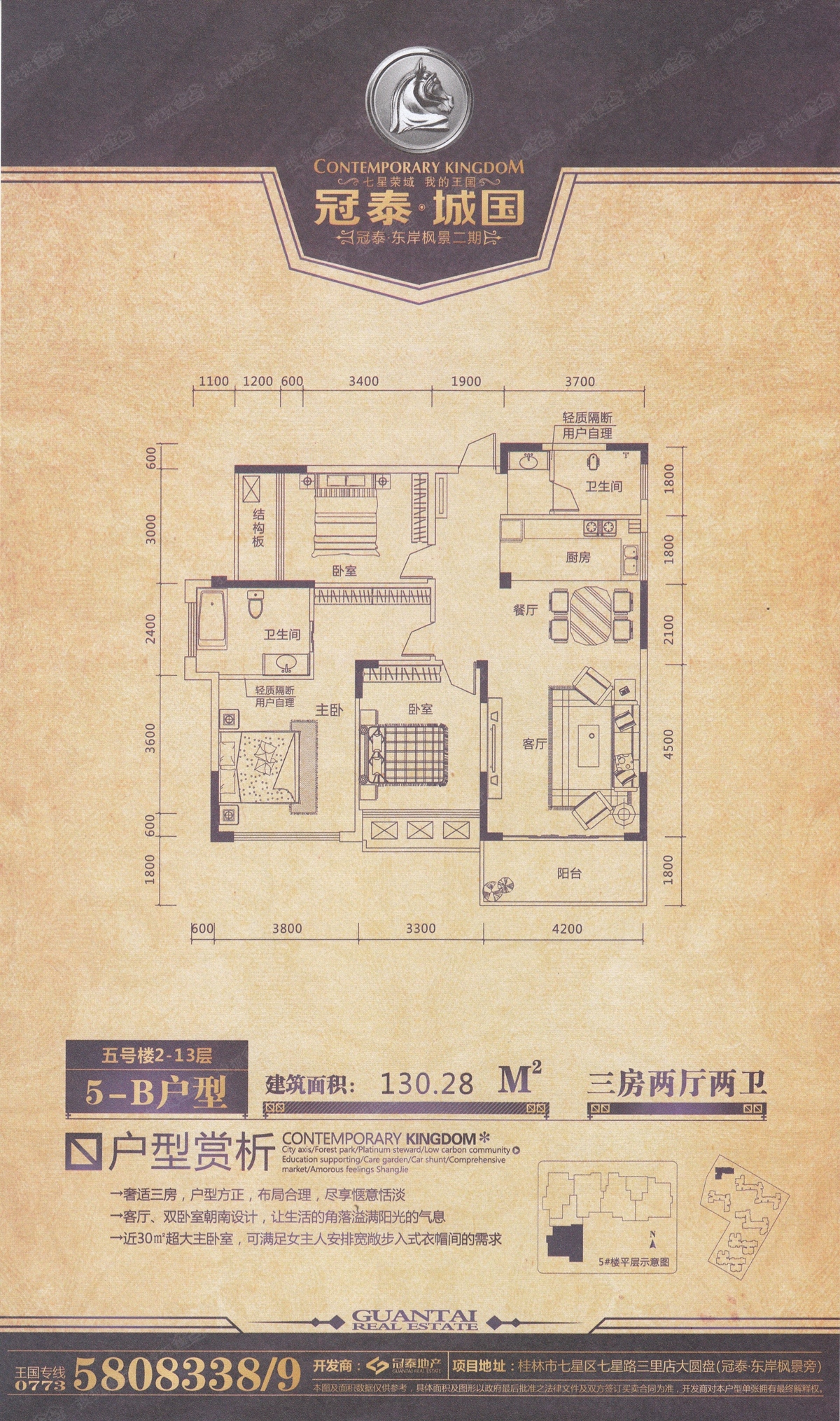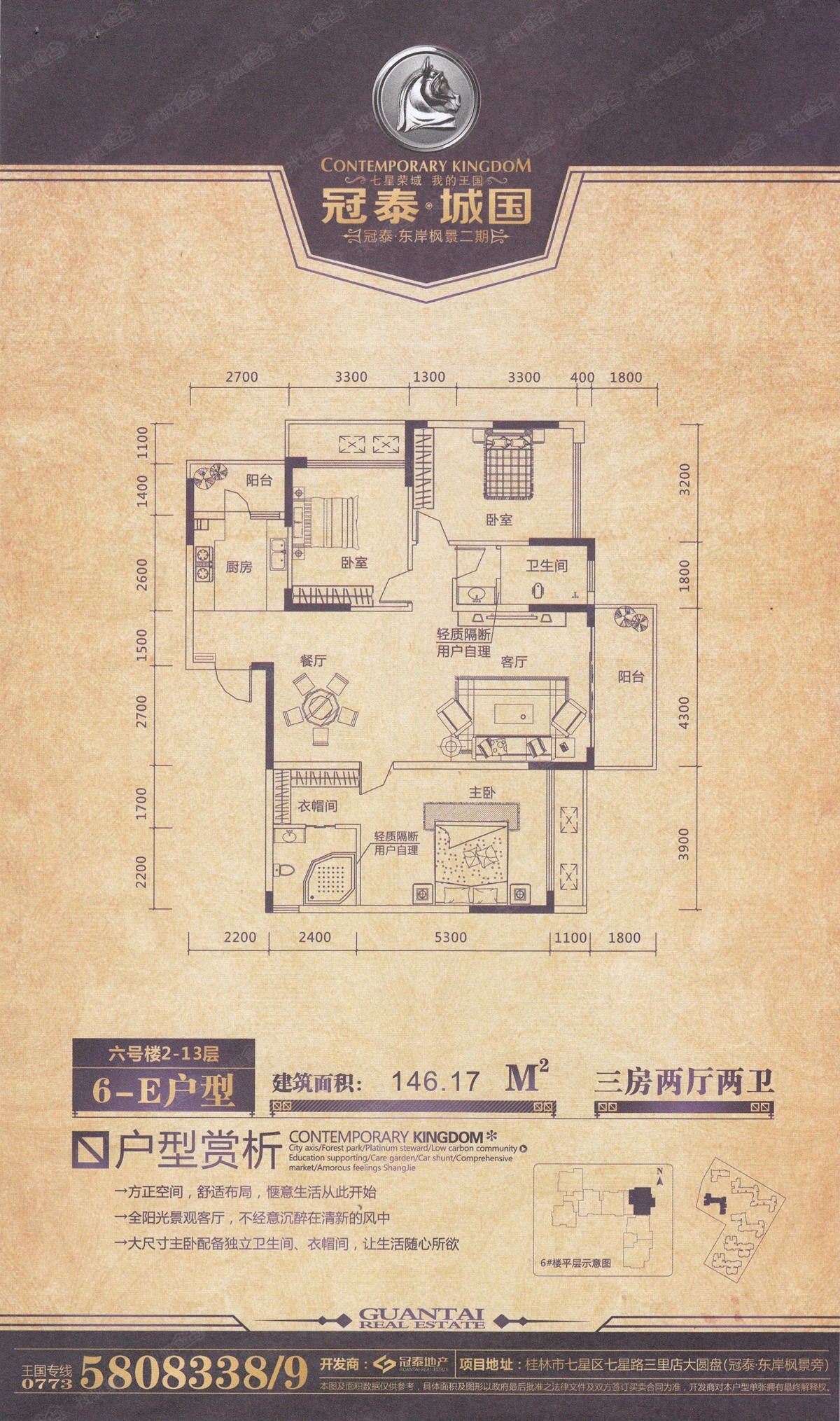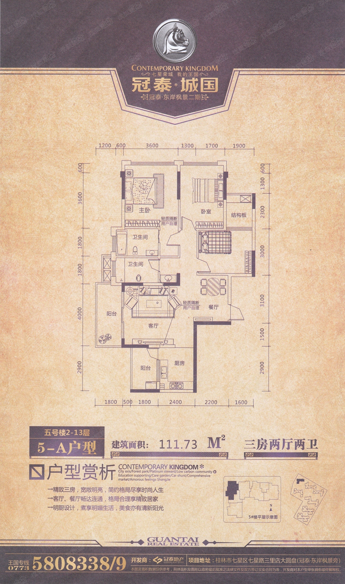 冠泰城国项目位于原花木公司苗圃内,地块紧邻冠泰东岸枫景,呈倒L型。规划总用地面积37172㎡。项目设计为现代建筑风格,由6栋14层高层住宅组成。冠泰城国为继东岸枫景、水晶郦城、叠彩山华庭等项目之后,冠泰地产的第四个高端住宅项目。作为冠泰地产品质升级之作,冠泰城国必将成为三里店乃至桂林的豪宅新标杆,值得桂林全城期待。