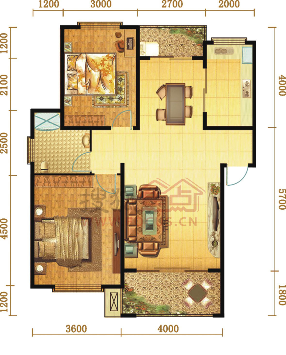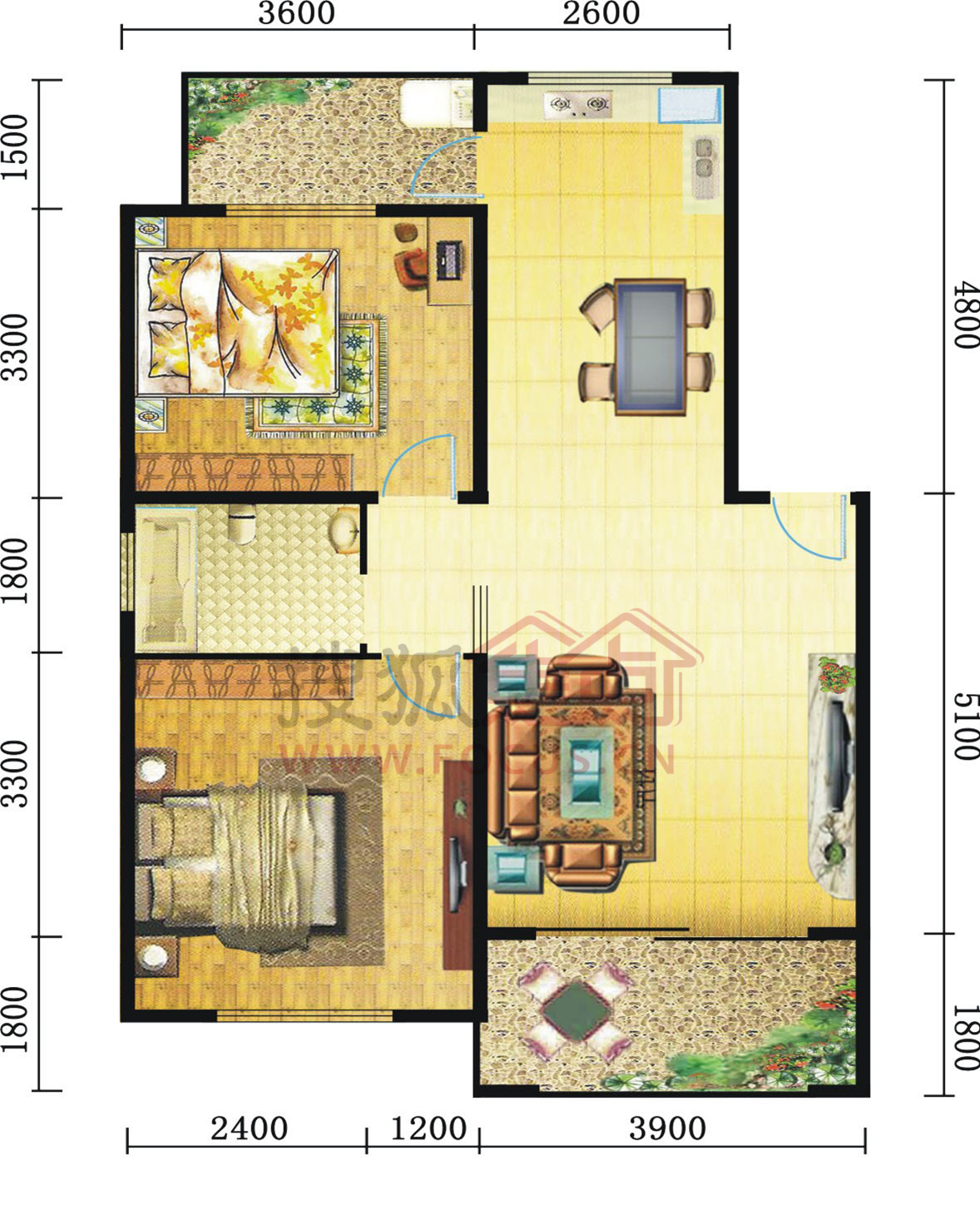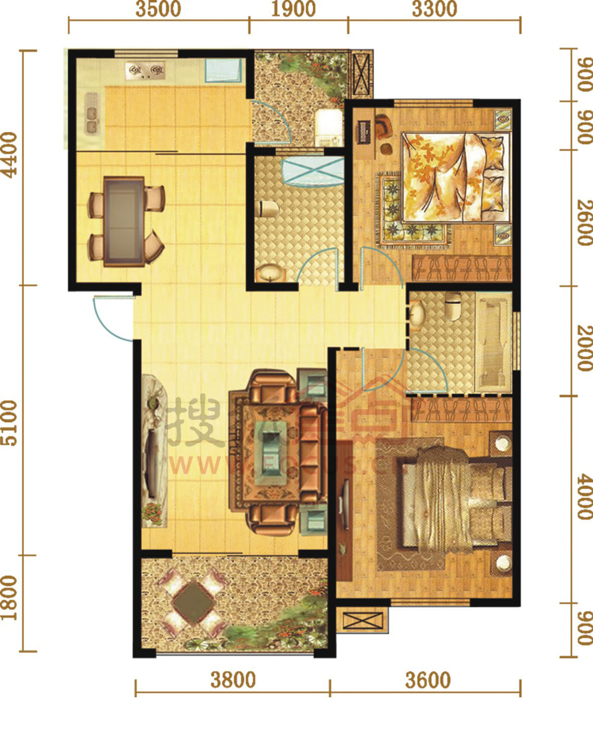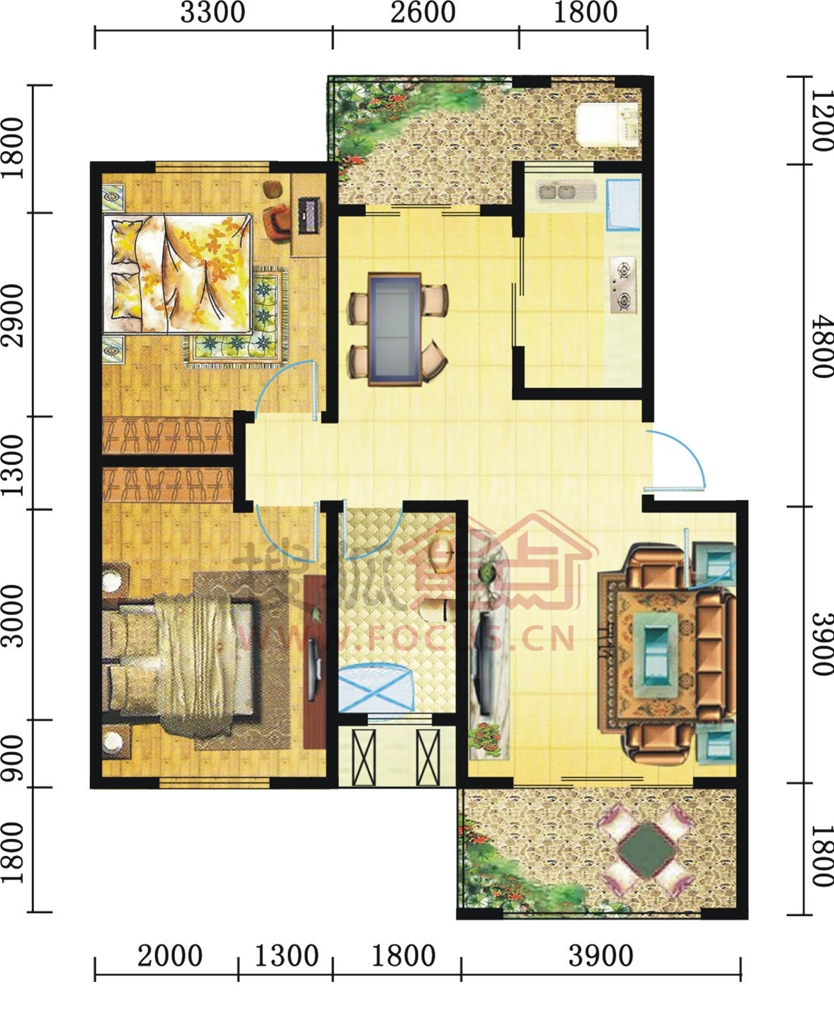 2室2厅1卫-90#两房两厅一卫