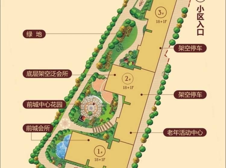 兴盛前城位于临桂县人民路二塘菜市路口旁,占地面积5726 平方米 ,由3#19层板式高层围合而成,绿化率高达35%。项目采用人车分流的社区道路规划设计,每栋架空层的活动空间,两梯三户,两梯四户。
