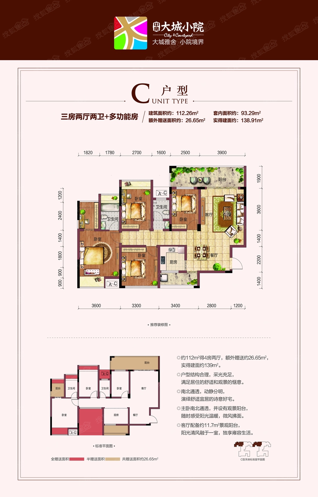 大城小院占地面积约60亩,总建筑面积约13万㎡,规划户数约1000户,绿化率超32%,项目由12栋11-20层小高层组成。