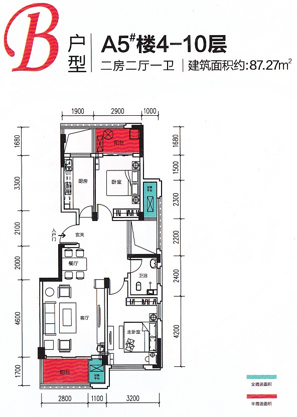 45万/套 建面87.27m²