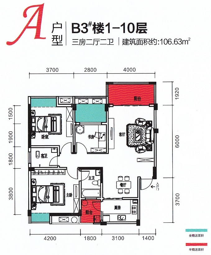 55万/套 建面106.63m²