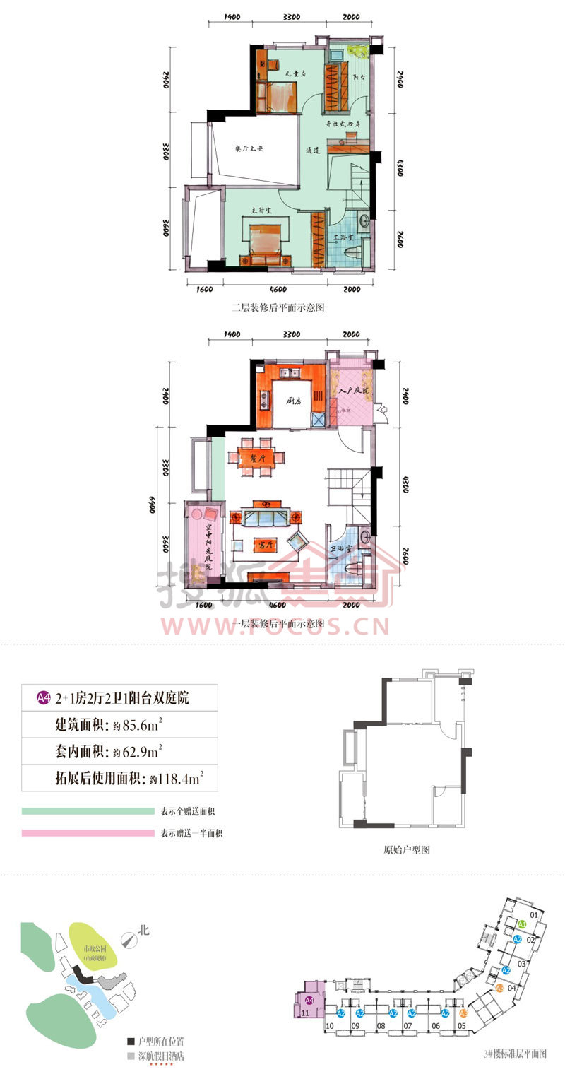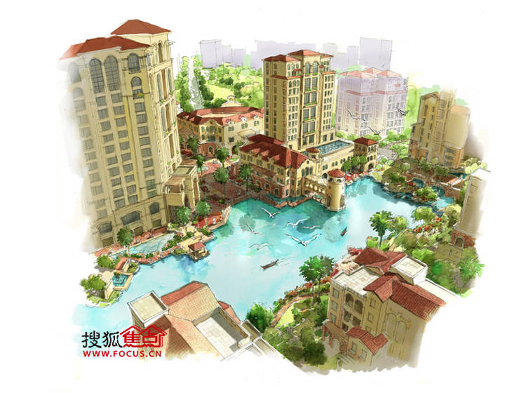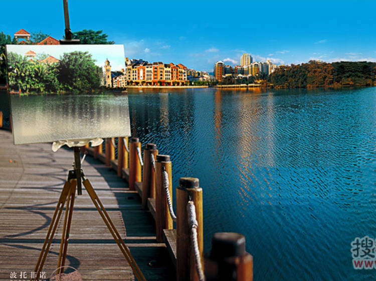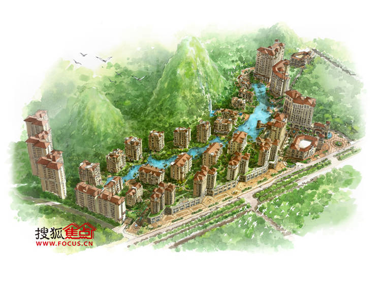 橄榄树庄园背靠元宝山,仅32栋建筑环绕1万㎡的科莫湖而建,建筑密度仅为25%,容积率仅为1.5。从橄榄树庄园出发,沿金山路可直通万福路,接洽“万福休闲养生区”的西端入口。