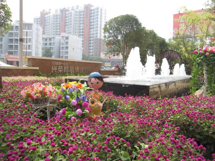 兴荣郡由小户型、高层住宅、联排别墅、风情步行街四大产品系组成。周边生活配套完善,有千米风情步行街,拟引进1个中心(集中商业)+6大业态(餐饮、保健、服饰、家居、母婴、生活服务),及部分其它补充业态来满足住区的各种日常生活需求,营造实用、便捷、时尚的生活方式。