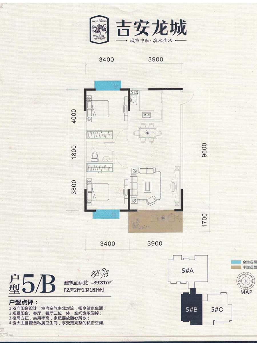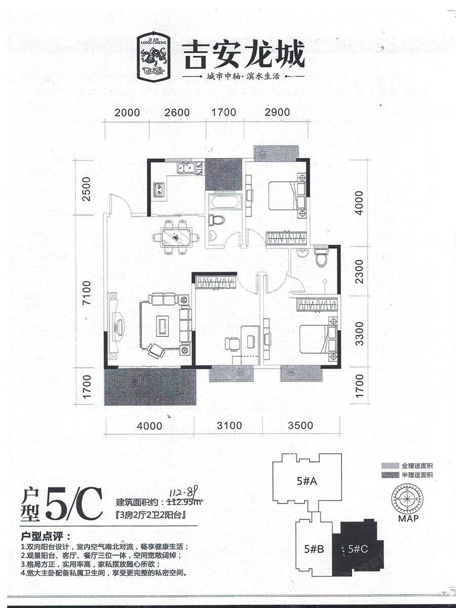 吉安龙城项目位于临桂机场路口,项目总建面约10万㎡,由5栋18层高层和1栋酒店式公寓组成,一期341户,绿化率31.82%,容积率4.94,规划停车位300多个。项目拥有2万㎡商业规划,涵盖超市、商业街、酒店等,丰富的业态经营满足业主生活上的需求,实现一站式消费购物。小区实行是人车分流制,在东、西两个方向设有人行、车行出入口,方便业主进出小区同时也能够使业主不受噪音干扰。项目特殊之处在于,项目依水而居,西干渠与沙塘河穿流而过,特别是西干渠将会在未来几年里打造以水为主题的滨水景观带,而这两条水体景观将与新区“两江四湖”环城水系,成为新区一道独特的风景线。 项目采取围合式建筑,这种设计使得房屋无论是通风、采光都能达到良好的效果。物业保安24h的轮班制、对讲门、监控系统都有效保障业主居住安全性。 户型有89㎡的二房,113-134㎡三房,143-153㎡四房,满足不同客户群的户型需求。