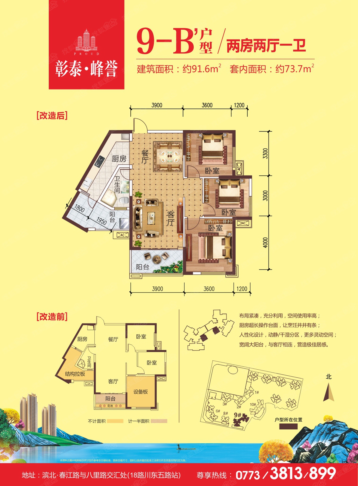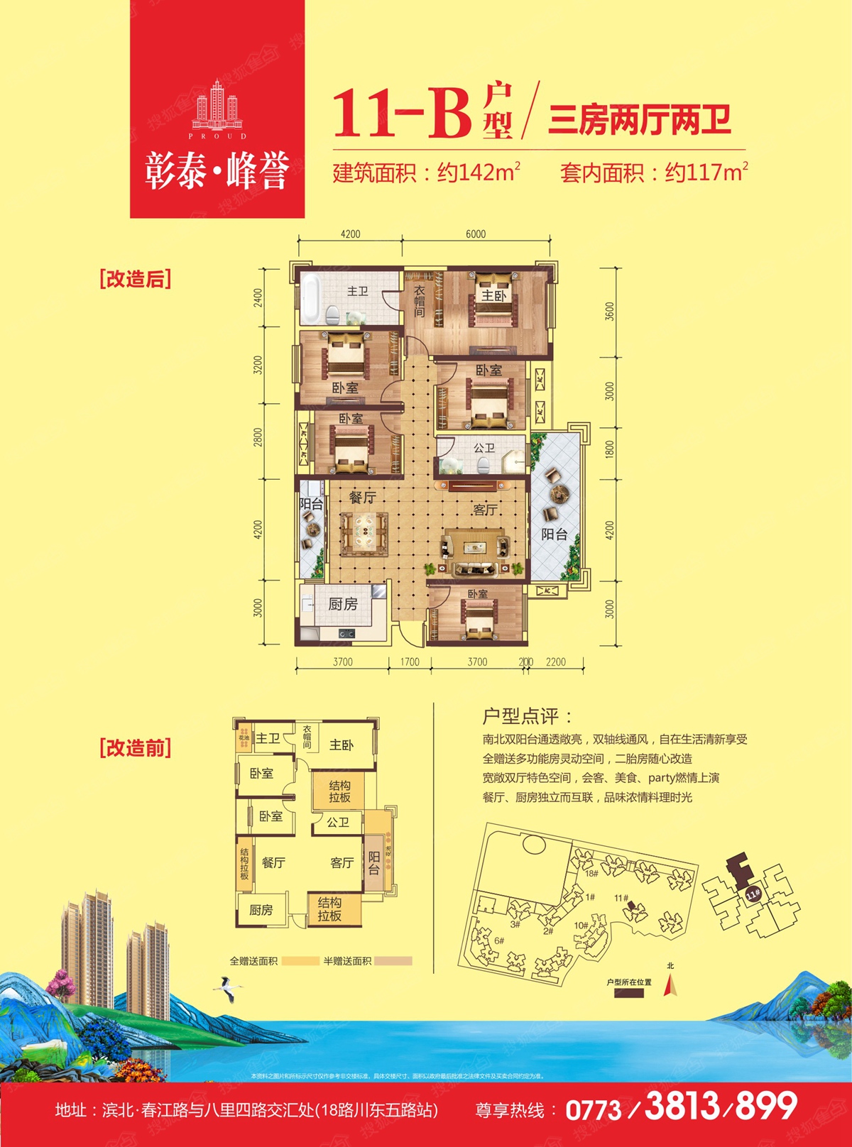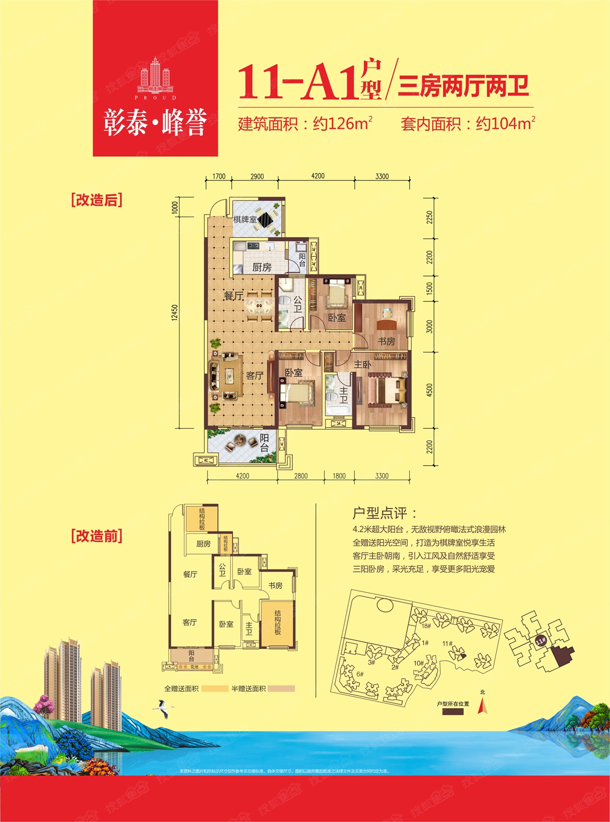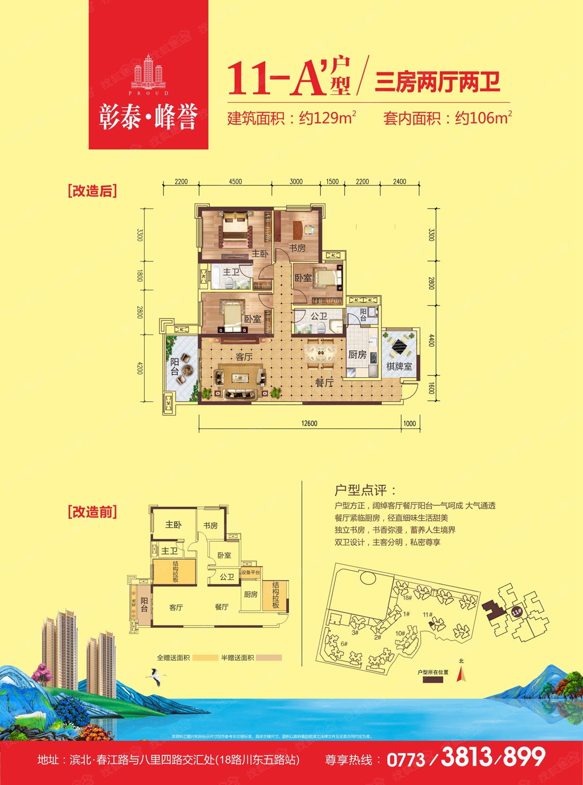 彰泰峰誉位于八里街开发区八里四路与川东五路交叉口东南角,宗地面积64955.97平方米,该地块被彰泰集团于2013年1月24日以2.91亿元的价格成功拍下,规划建有一处近2万平方米的城市广场。