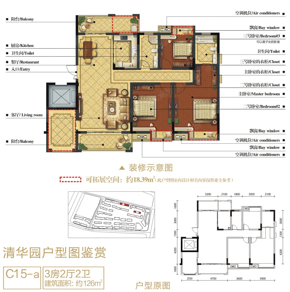 3室2厅2卫-清华园C-15a户型图