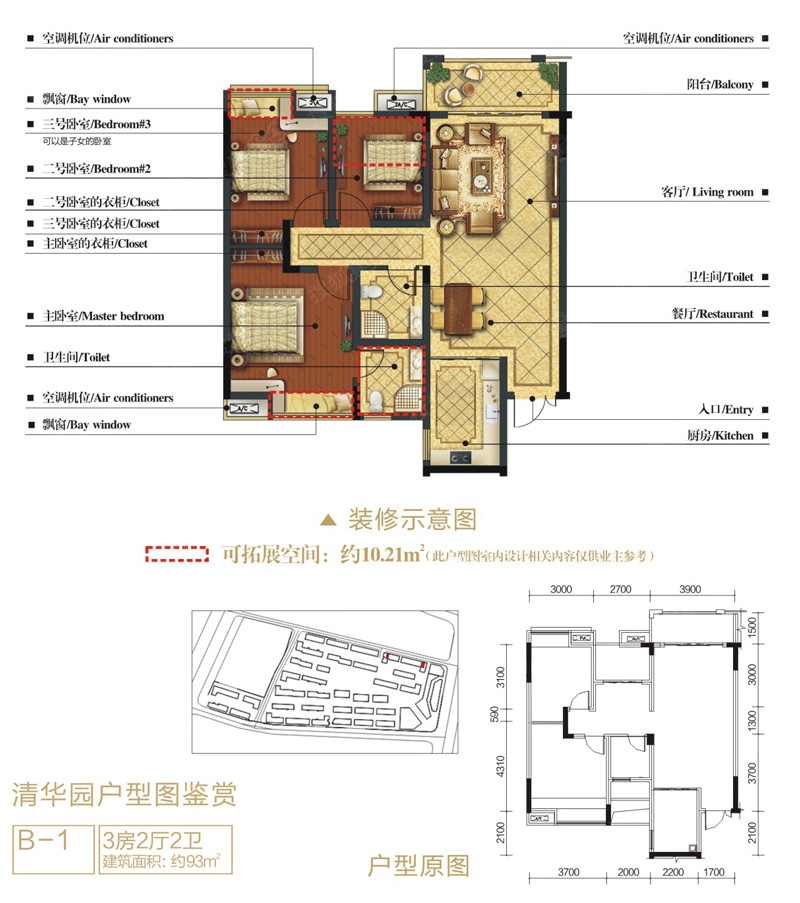 3室2厅2卫-清华园C-20户型图