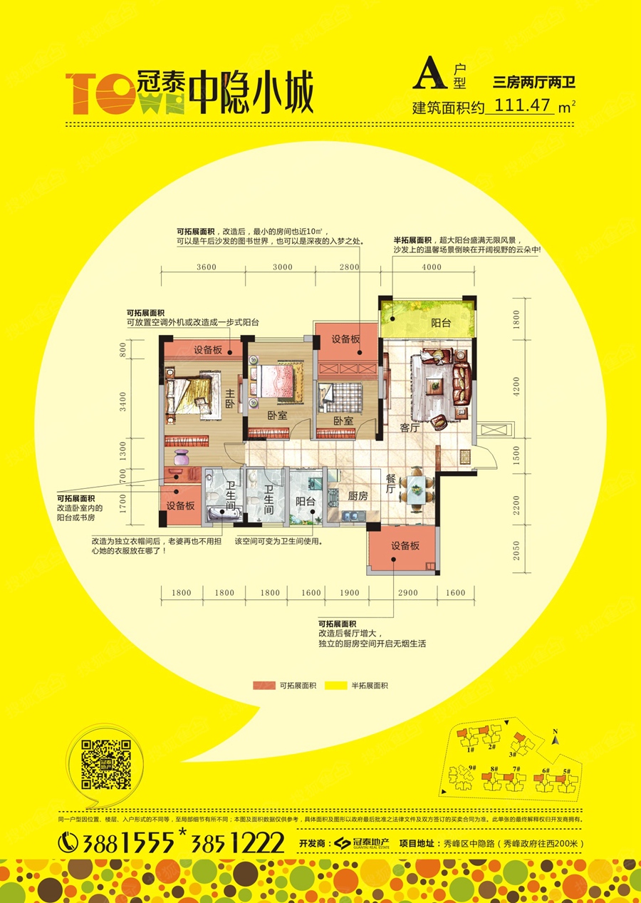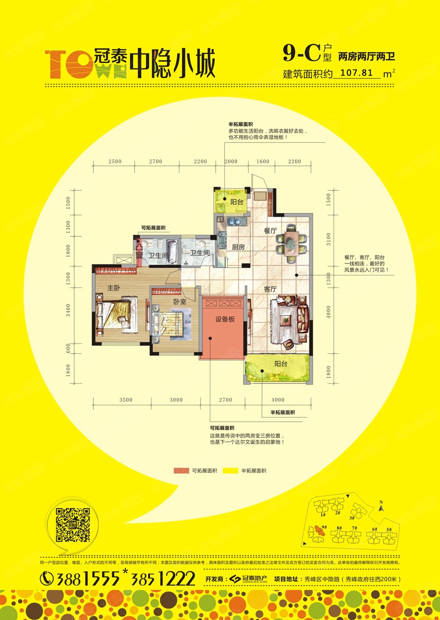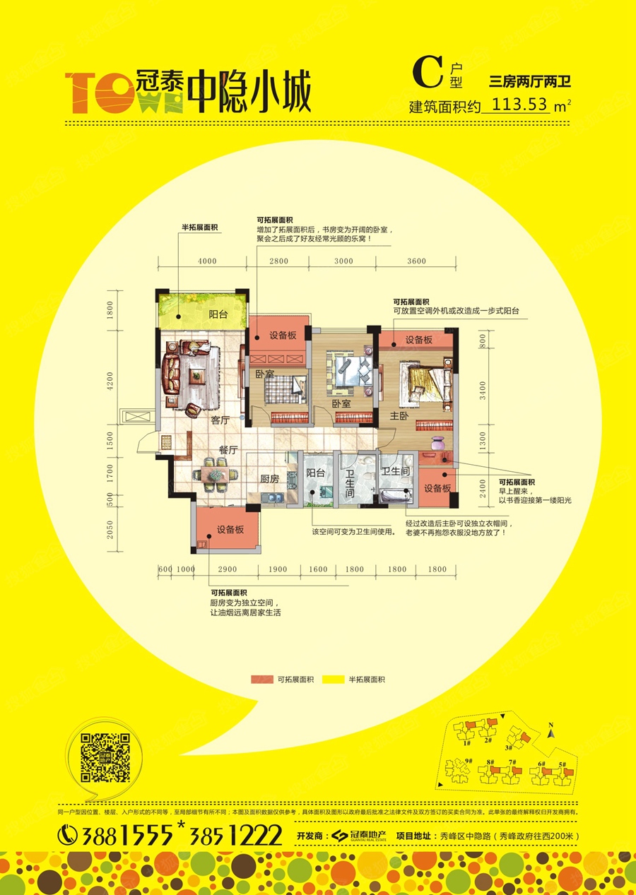 冠泰中隐小城位于秀峰区中隐路与琴潭道交汇处,青禾美邦往北500米。紧邻在建中的桂林市榕湖小学琴潭分校。项目由8幢16层电梯景观小高层围合而成,总占地18861平方米,总建筑面积为74285平方米,绿化率达30%以上,总体规划有492户,停车位配比超1:1。项目内规划有风情商业街、幼儿园,户型面积为85-115平方米灵动中小户型。