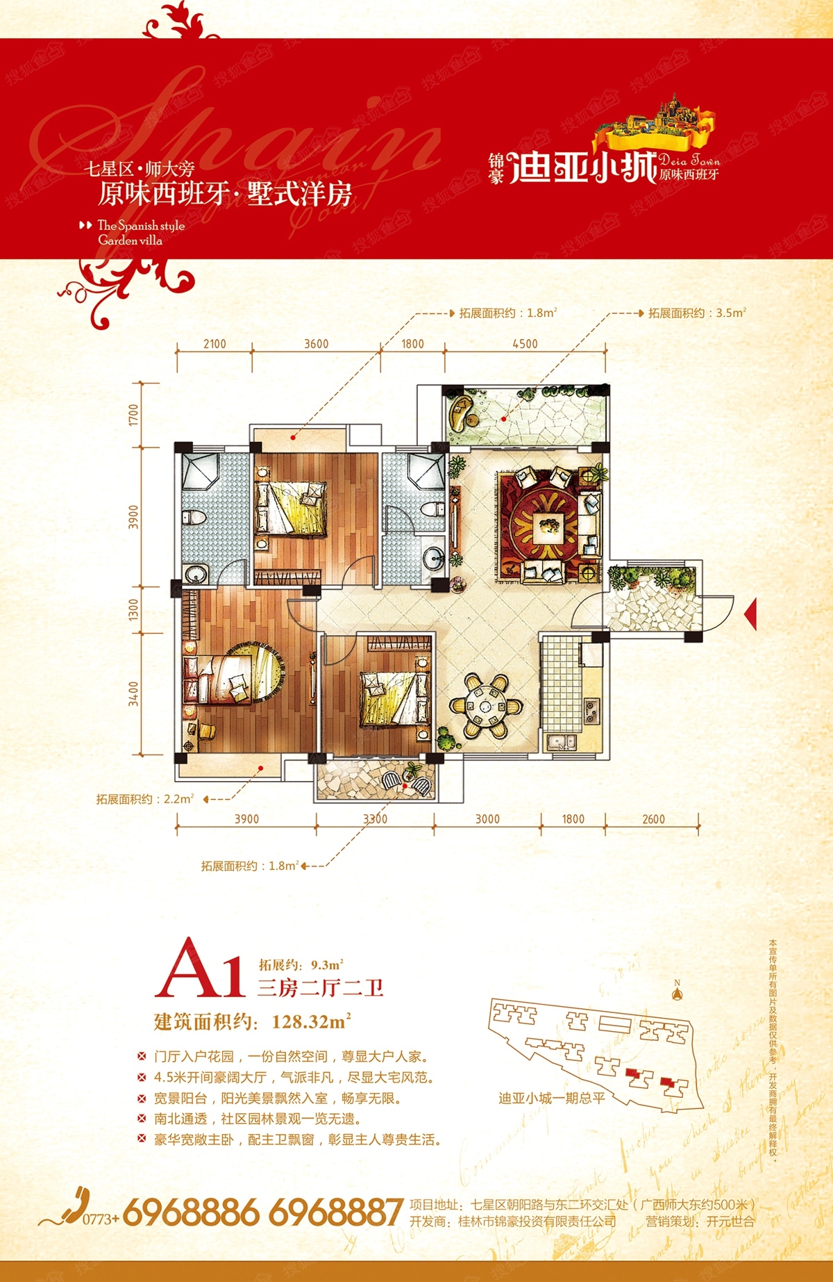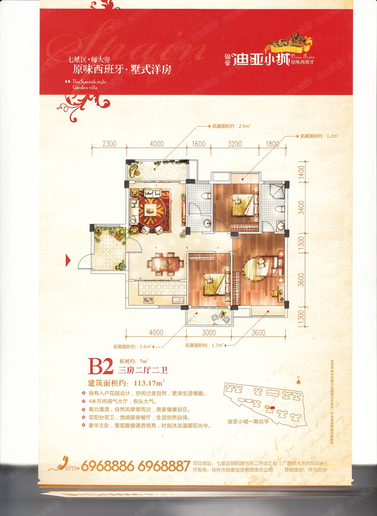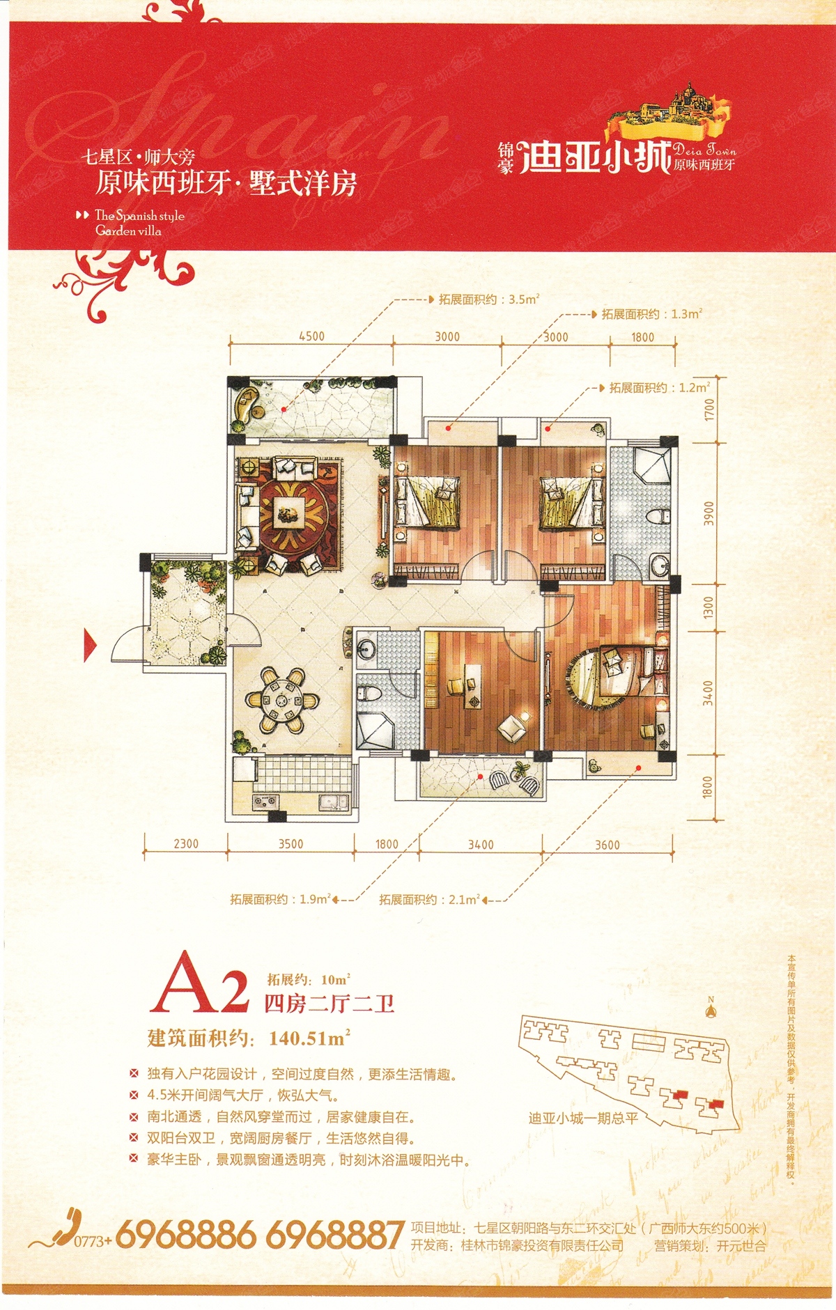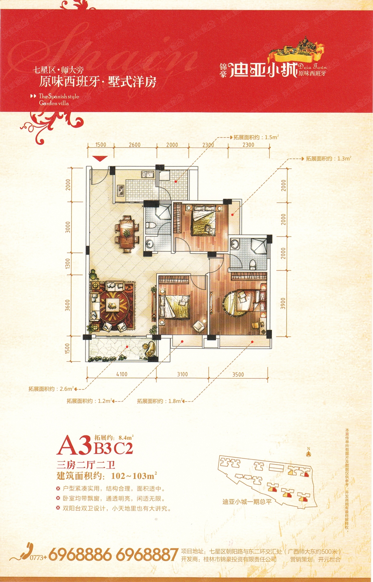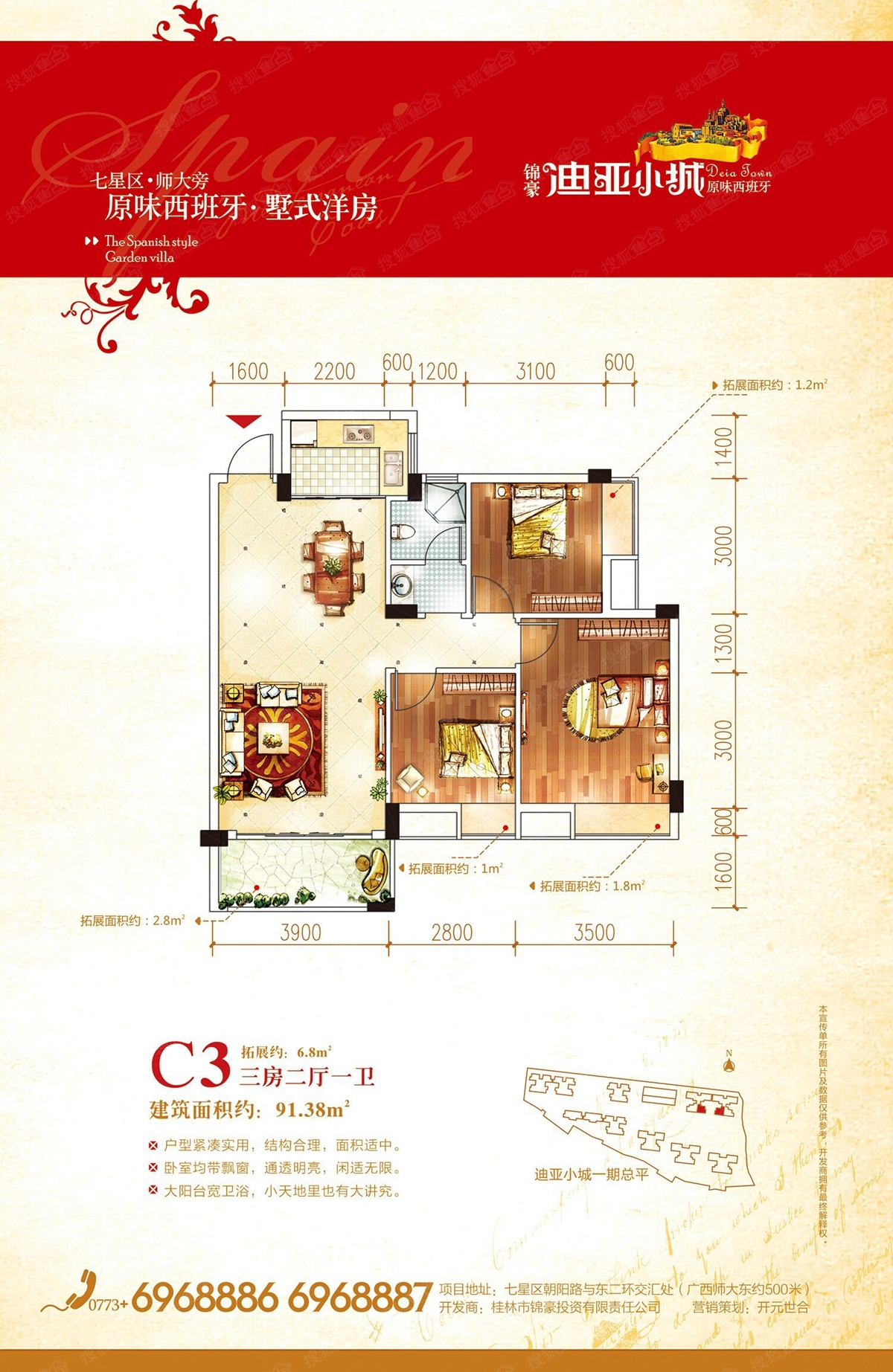 迪亚小城是由桂林锦豪投资有限公司精心打造的集幼儿园、住宅、商业于一体的洋房社区!位于七星区的朝阳路与东二环路的交叉处。周边生活配套完善,餐饮、酒店娱乐、体育一应俱全;教育资源,名校汇集,朝阳、七星农贸市场、第五人民医院,高新医院,各大银行网点等配套齐全。