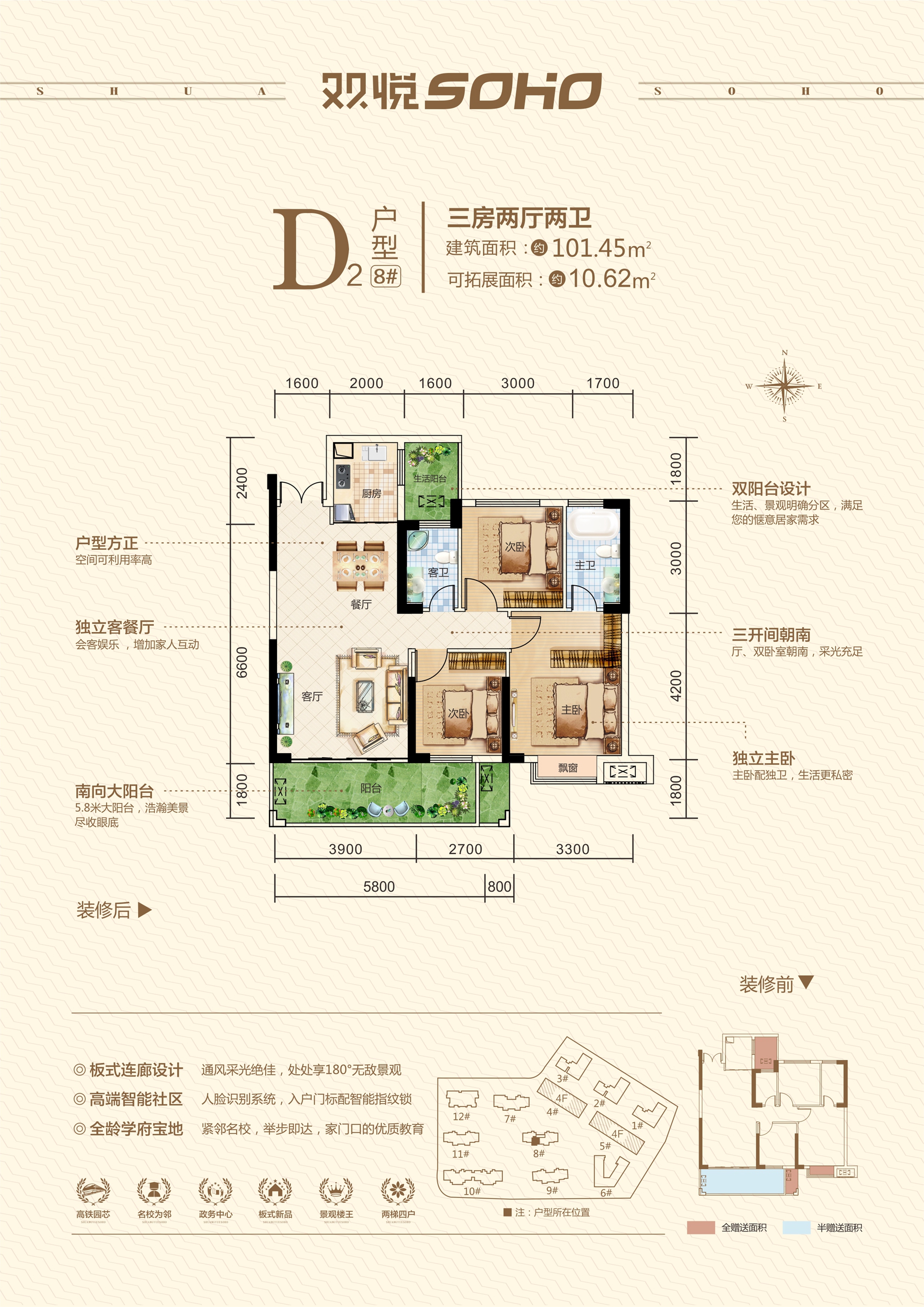 在售 南北通透 户型方正 主卧带卫 观景落地窗 双阳台