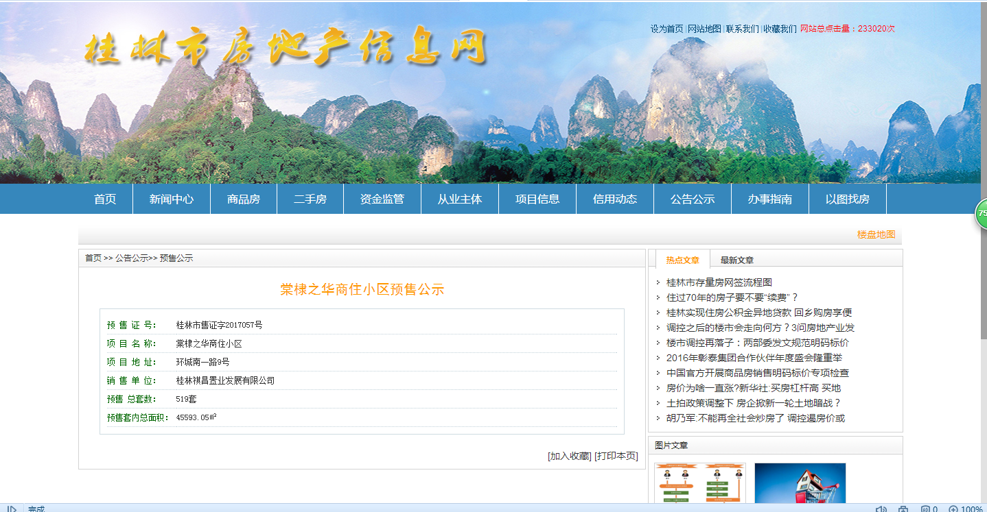 - 桂林市售证字2017057号 详情发证时间 2017-11-22绑定楼栋预售总套数:519套 预售套内总面积:45593.05㎡证件照片