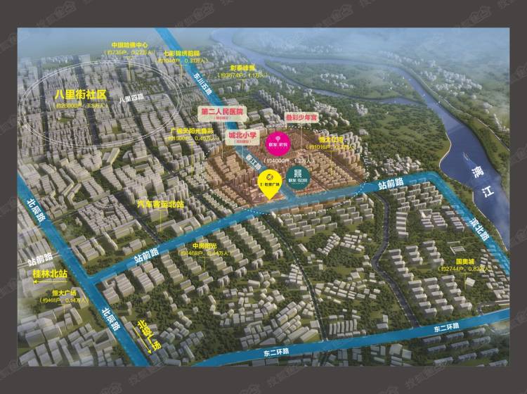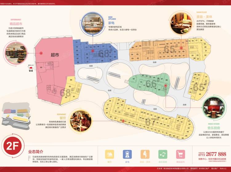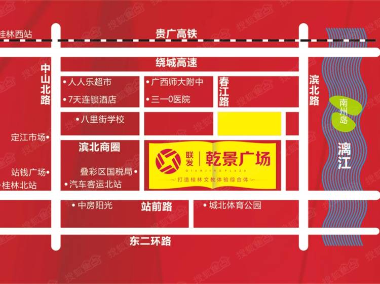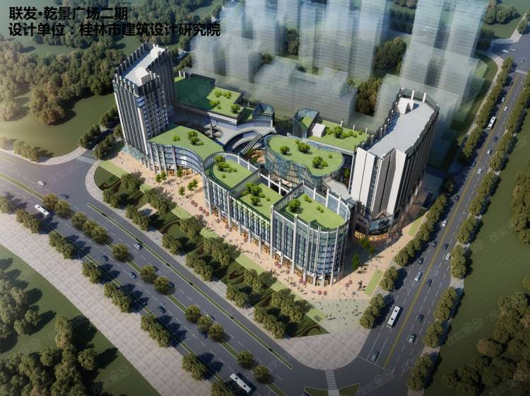 联发乾景广场项目占地2万平方米,总建面约8万平方米。是联发在桂林开发的第十个项目,第二个商业广场。项目选择了街Mall的建筑模式,广场内部设计了中央空中花园,立体式跃层电梯,每层景观连廊连接。乾景广场的业态定位,有六大板块,(1)教育中心,(2)公寓,(3)酒店,(4)商务,(5)生活广场,(6)体验街区。联发乾景广场是以教育为主力业态,大部分由联发自持,并由运营商大摩统一运营。
