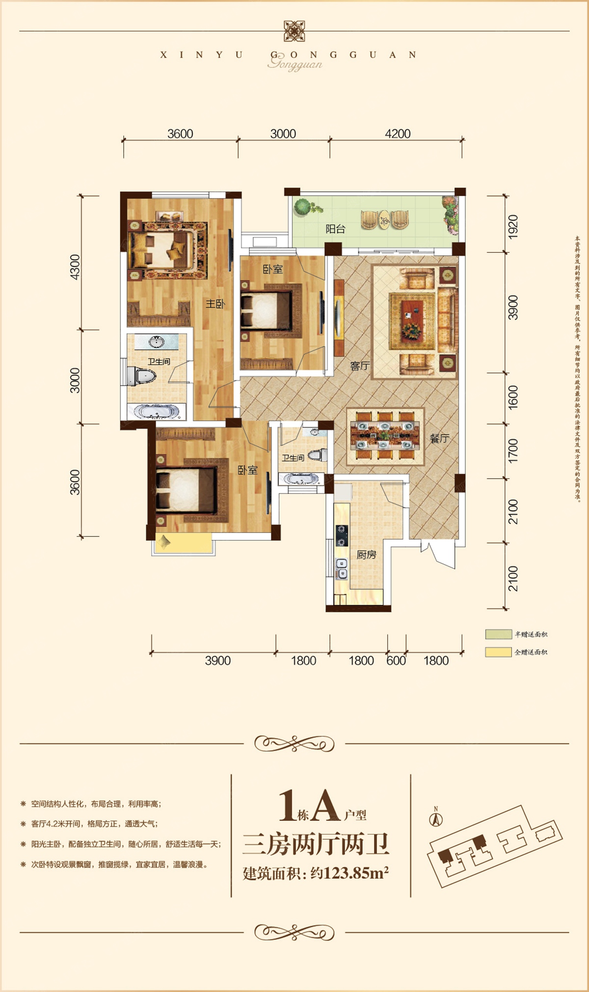 建面123.85m²