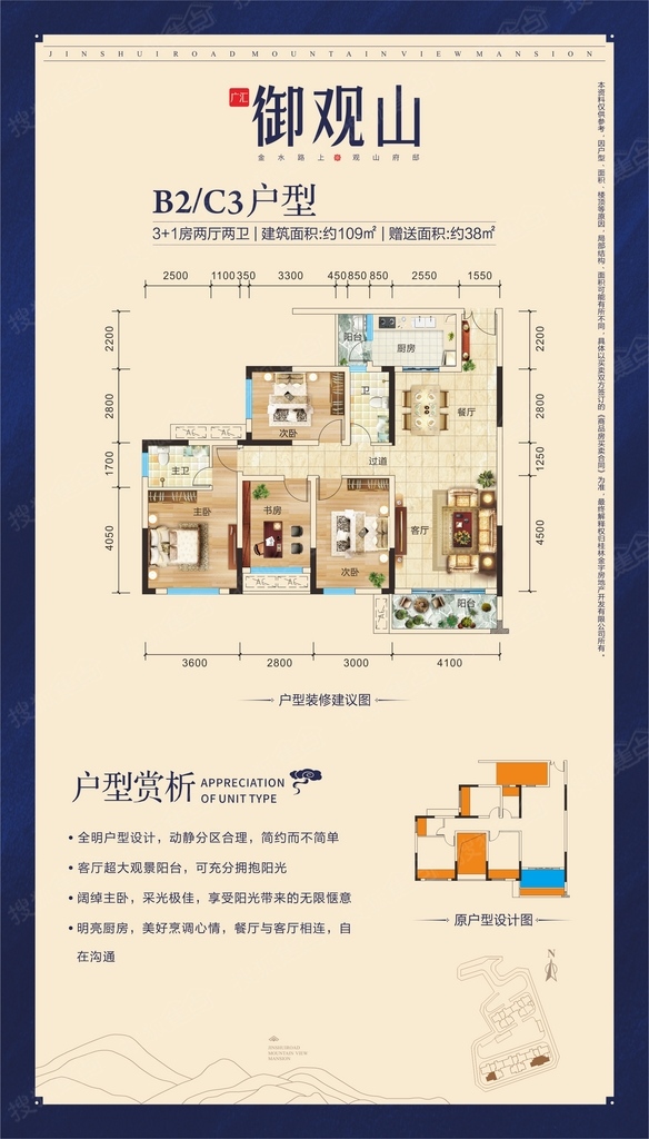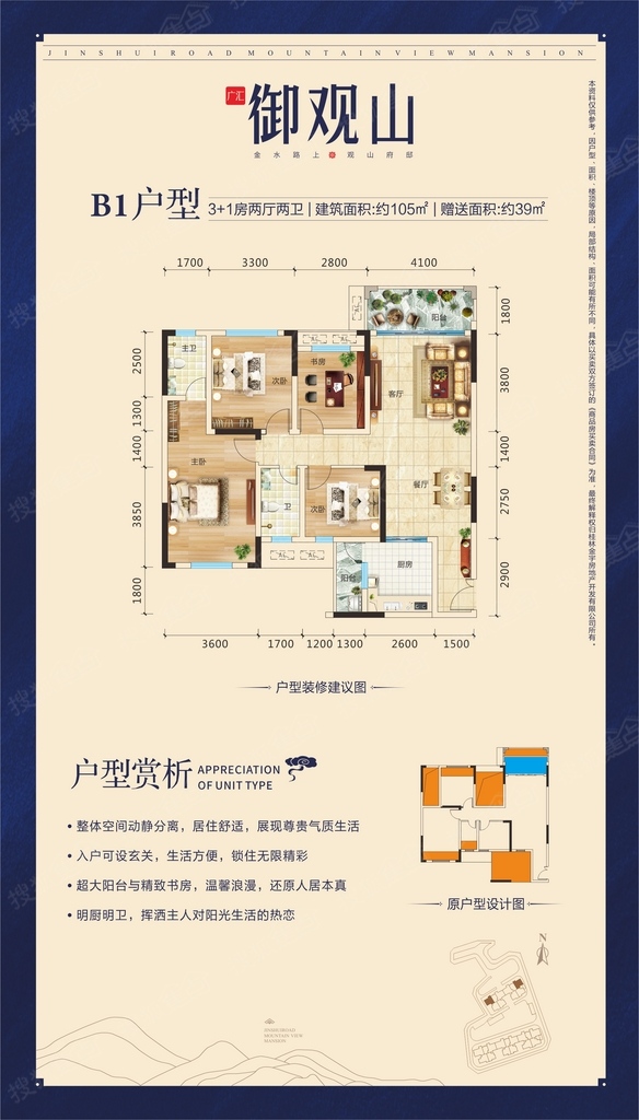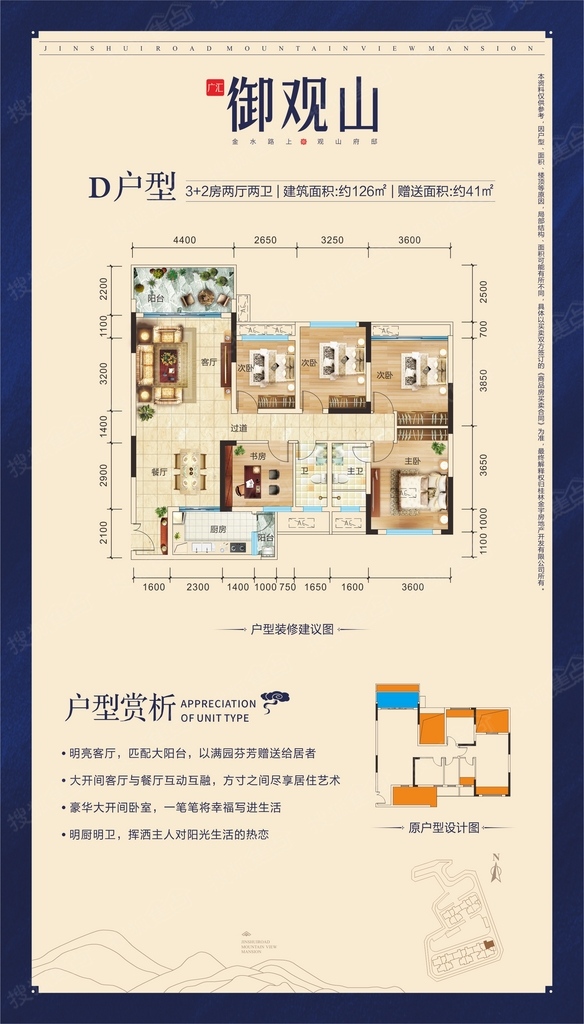 广汇御观山位处金水路上,左邻新兴崛起的临桂新区,右靠大鳄云集的琴潭板块,更享老城区丰沛资源。同时,交通便捷,项目步行170米,即达K2、88路、81路等多条公交路线及县域公交车站,轻松往返桂林老城核心区及新行政中心区,畅享‘双城’快生活。周边有桂林国家森林公园、琴潭千亩荷塘湿地公园,繁华静谧,空气清新,静享自然;项目双阔景广场设计,外有约2500㎡公园休闲广场、内有约4000㎡中庭水景广场,嬉戏草坪、儿童乐园、景观小品、架空层休闲区,让业主尽享宁静闲适人生。 另外,项目采用Art-Deco风格,成就高品质人文经典建筑。产品低公摊、全明户型设计,南北通透,实现了“四明空间”——明卧、明厅、明厨、明卫,保证充足的采光,真正达到了科学、实用、采光、通风优越的优质结合,无不代表着广汇创新、细致的开发理念;独具特色的阳光地下车库设计,吸取了人车分流以人为本的设计理念,机动车、非机动车分别独立入库,电梯直接入户,极大保证了每位业主的安全,让小区院落变成一个绿地公园步行街!采用“首层架空”的高层住宅设计理念,绿色共用、环境共享,极大的通透性和趣味性以缓解水泥森林的压抑和沉闷, 打造真正意义的“休闲公园”和“公共客厅”。