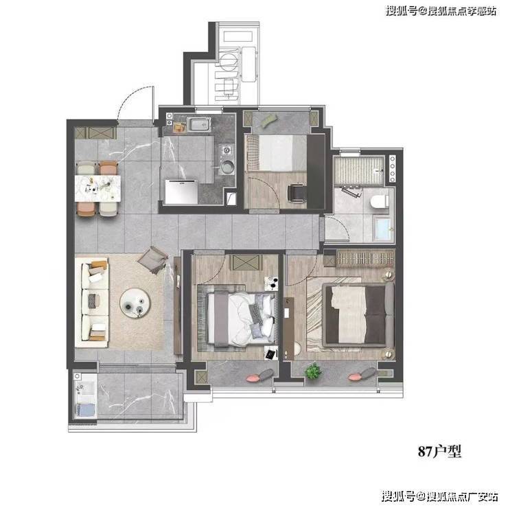 户型:首开将推出建面约87-99㎡3房,均价约7.9万/㎡!