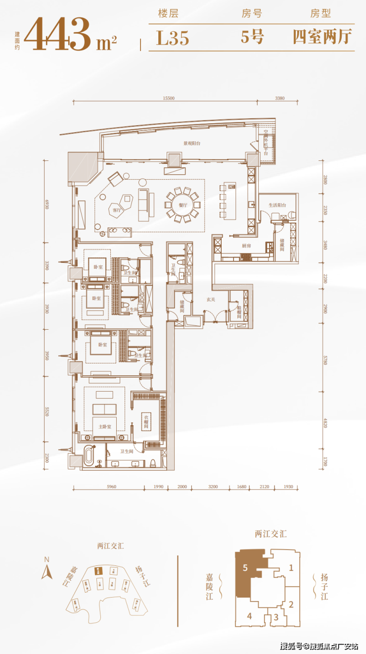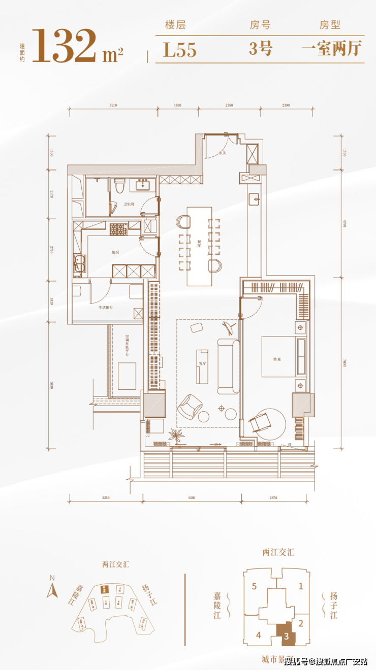 正看两江交汇,最低62楼,共8套