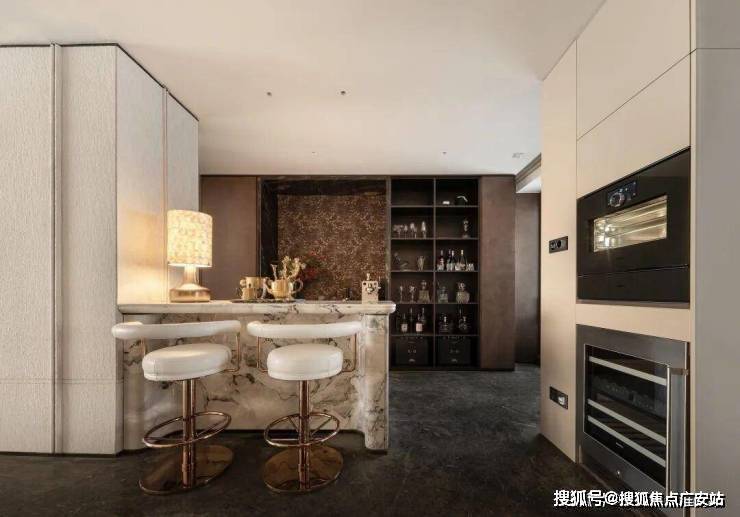 为一块奢石弧形工艺,投入翻倍的成本,整屋坚持用一种昂贵的木饰面贯通始终,从而实现整体艺术风格的统一。