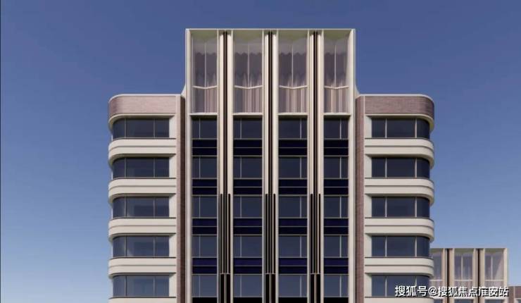 住宅建筑立面由砖红铝板搭配柔美圆弧形结构,竖向线条清晰挺拔,层层递进的装饰主义,回应着上海传统住宅的特质,将建筑向上引领,勾勒出独特的住宅体态。