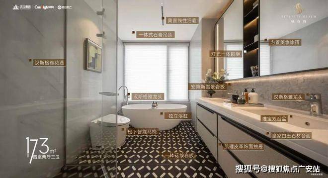 比如,日本东芝的中央空调,新风系统,德国博世的厨房六件套(含两台嵌入式冰箱),以及主次卫松下双智能坐便器,汉斯格雅五金,唯宝台盆等,而且厨房单独配置了东芝空调。