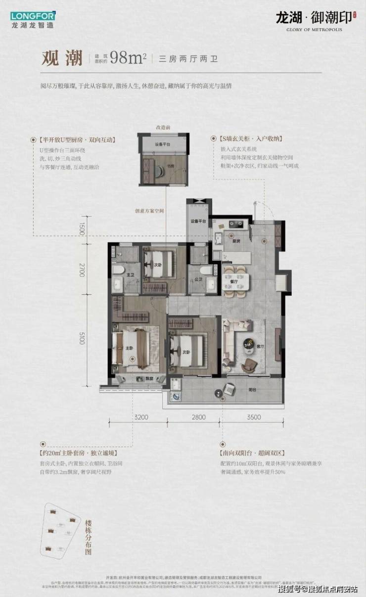 龙湖御潮印占地约2.5万方,打造纯粹的7幢高层,错落排布出约494户住宅社区。整体南北阵列式排布,放大楼间距,强化采光和通风的同时,也提升了居住的私密性。整个小区呈现出疏朗、开阔的状态,比一般“高低配”更能带来高舒适度的居住感受。4009987-894当看完项目产品的解题思路后,小胖敢这样说,它的品质引领板块潮流,且不单单是在世纪城2.0,在全杭州3万+/平,甚至5万+/平的改善楼盘里,也是足够“抗打”。