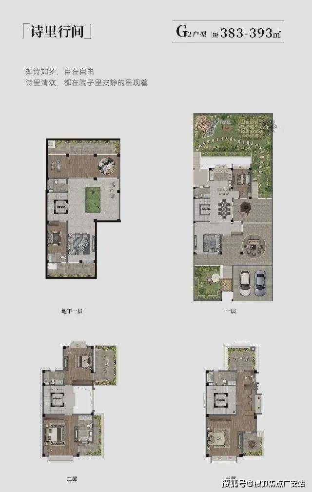 双拼:383-394㎡,总价2300万起,单价约6.1万/㎡,带独立花园及车库