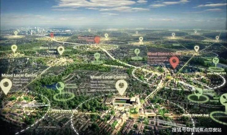 展现出首层聚落-公园绿岭-立体街区