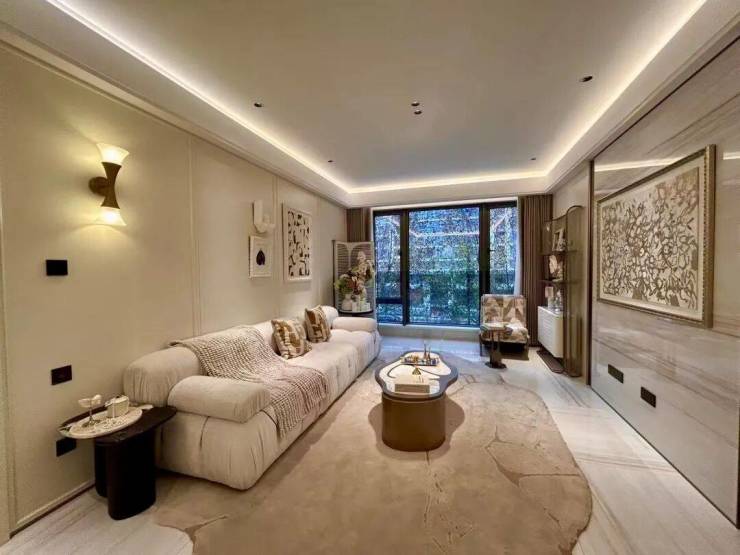 在立面塑造上,建筑呈现出公建化的精致与简约。线条干净利落,大面积玻璃幕墙与高级金属、石材材质结合,勾勒出现代而典雅的轮廓。立面的设计不仅关乎美学,更服务于生活,通过优化的窗墙比,将板上的花园盛景与远方的城市风光最大限度地引入室内。