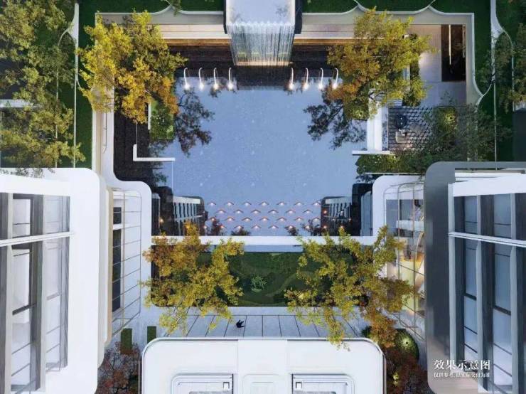 1200平米下沉式庭院,叠水成瀑,打破常规“坑洞”设计,打造上下双层平行空间,营造独特的滨水度假体验,令人一见倾心。