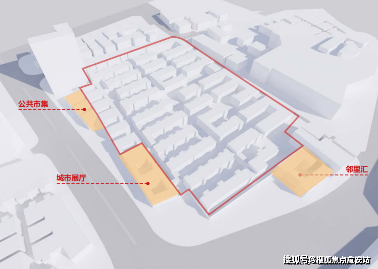 在社区边界上,会设置一些柔性界面,来丰富城市公共空间。比如公共市集、城市展厅、邻里汇等。