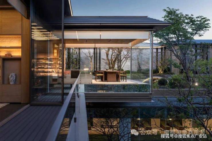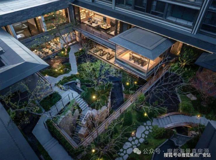460㎡的下沉式庭院,精选太行山金景石堆叠成小山丘,溪水,并移栽岭南珍贵的古桩铁冬青和中华原生乌桕树,寓意“聚财守业”!