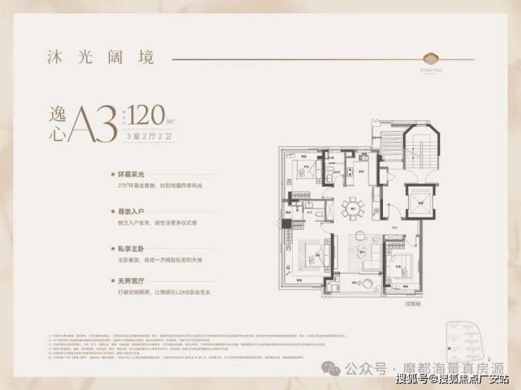 建面约120-145㎡沐光阔境,以类一梯一户(部分户型),告别拥挤,营造从容的归家仪式;“3D魔法收纳系统”直击杂物难题:早C晚A的餐边柜、双面玄关、“超级鞋柜”等精妙的设计,让空间不断扩容。客餐区无界联动,打破传统分区隔阂,让家人互动更自在。