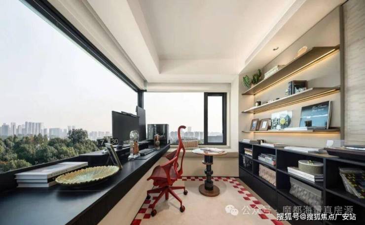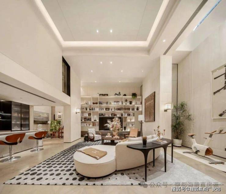 1200㎡的架空层和会所空间,架空层和会所空间功能齐全,整合了书吧、轻办公、社交、运动4个最核心的功能区,整体低调又奢华。