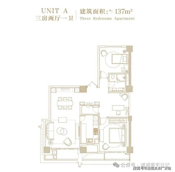建面约137㎡3房2厅2卫▼