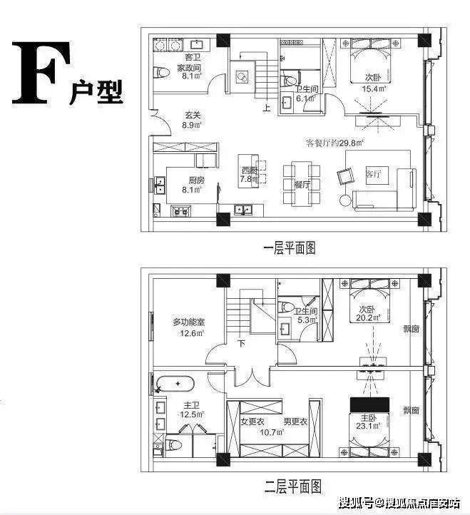 F户型:三套房、中西厨、奢阔主卧带大衣帽间