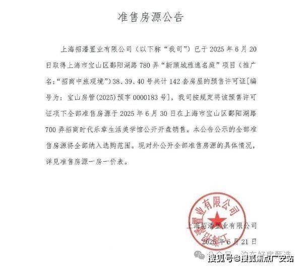 2024年7月9日,招商蛇口&中旅投资拿下宝山顾村7号线潘广路站旁地块。目前,项目定名为招商中旅·观境,主力户型为建面约110㎡3房和约144㎡4房。