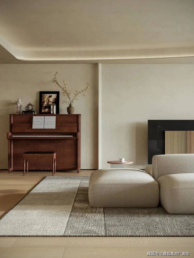 为营造自由通透的空间感,利用软装辅助流畅的生活动线,米灰色低饱和模块沙发,以多面体块拼接造型,灵动适配不同视角与布局,成为家庭的主要活动区域。