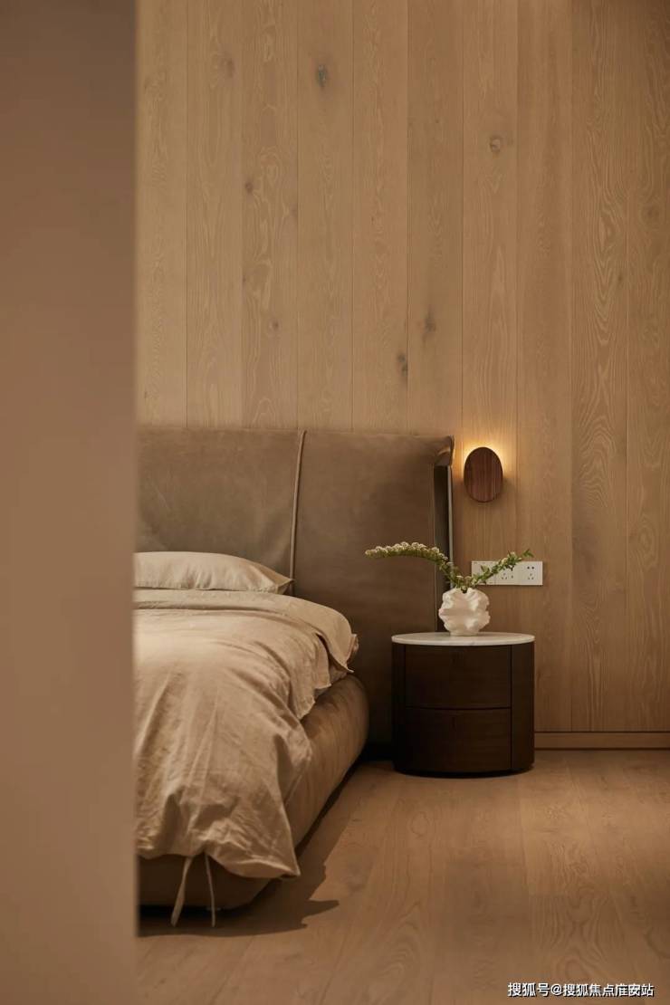 设计师为床体打造了“凹槽”,展现了家的安稳性,同时赋予了墙面细腻的叶片,来点缀空间的自然之意,让生活的意境更具浪漫的成分。
