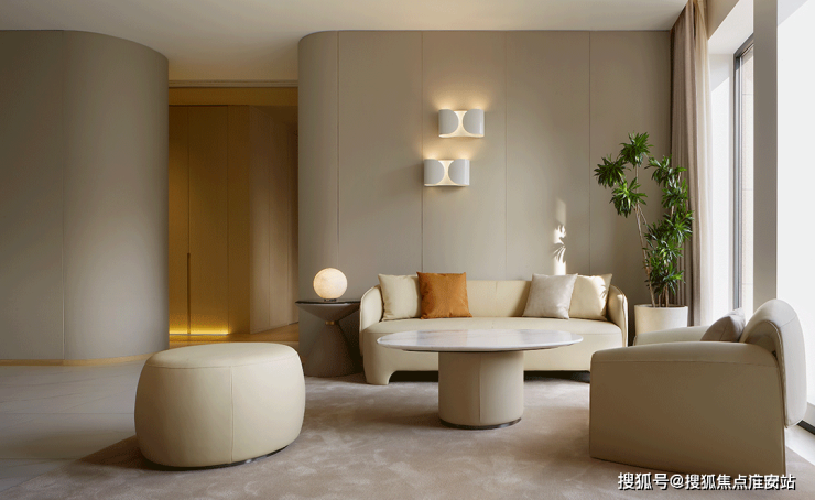 凭借温柔的弧形,优化了原始梁柱的琐碎感和锐利感,与木元素或纯色调糅合,让光影自由地流动。以玫瑰为灵感创作的单椅装点一隅,贵雅无比,茶几以叠层魅力与之对话,达成酝酿风雅的共识。