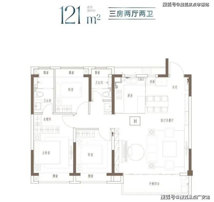 户型特点:3开间朝南,全屋阳光充足;L型厨房转角移门设计,最大化空间视野;四飘窗设计,通透空间享受;动静分区,亲密有度;套房式主卧,容纳私谧生活点滴;