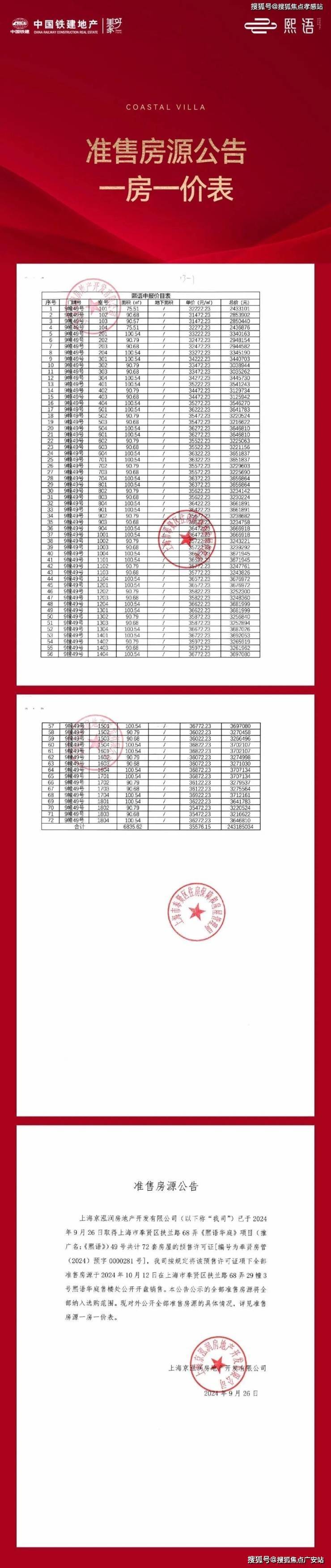 【中国铁建·熙语】售楼处电话:400-969-2958✨✨ 项目2期一房一价表▼