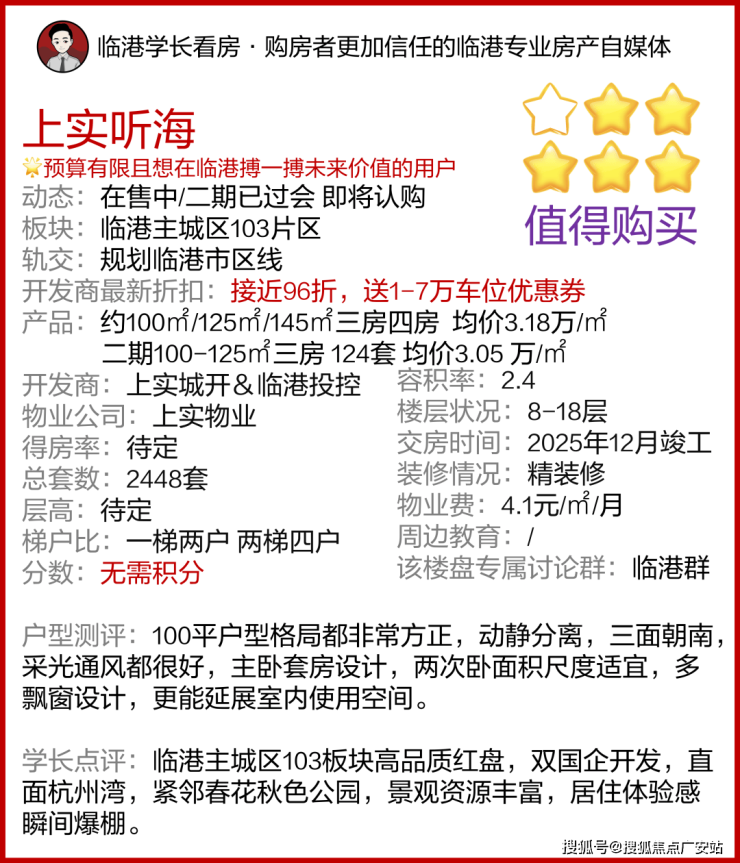最新消息,临港主城区103片区「上实听海」二期已过会,即将认购!推出建面约100-125㎡三房,均价3.05 万/㎡!