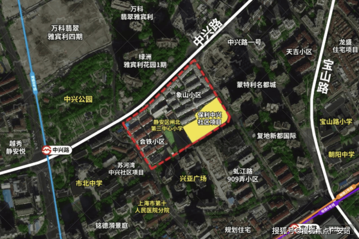 2023年10月11日,在上海市第三轮土拍首轮活动中,保利发展以总价154612万元成功竞得静安区中兴社区C070202单元280-06地块。溢价率为9.7%。楼板价为81375元/平方米,高层房地联动价12.5万/m²,风貌别墅房地联动价18万//m²。
