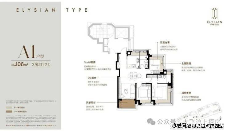约106m²三房两厅两卫(A1户型)