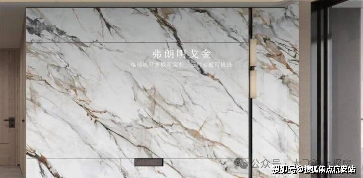 充分考虑业主的个性化需求,在电视背景板提供了新潘多拉、云中翡翠、弗朗明戈金三种结晶釉面岩板选择,成本更高,施工难度也更大。